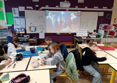 Samedi 29 novembre, il y avait école à Béthanie : c’était la matinée de l’ AVENT avec au programme la célébration à l’église de Chantonnay, les ateliers de Noël en classe « Autour de la crèche », la vente de livre en BCD et la vente de sapins organisée par l’APEL ; sans oublier le moment de convivialité offert par les parents de L ‘APEL où le vin chaud a été fort apprécié !
