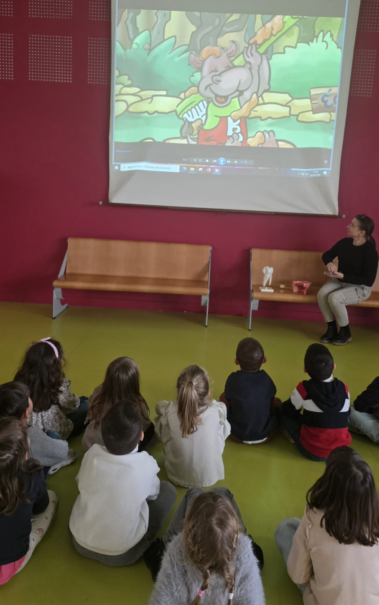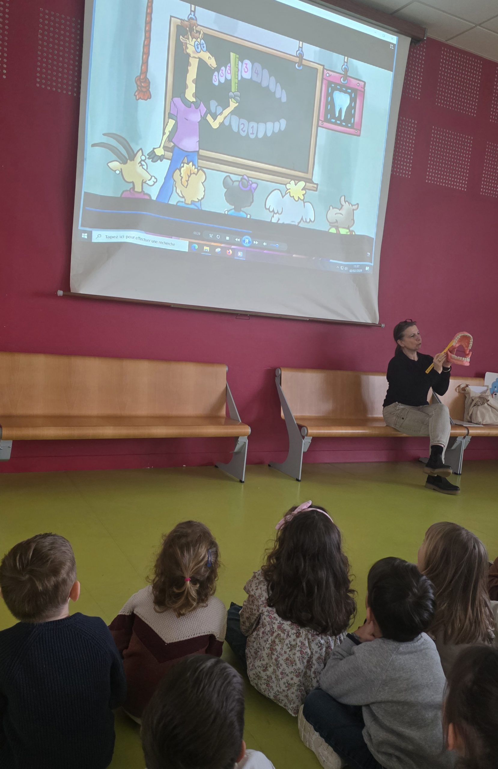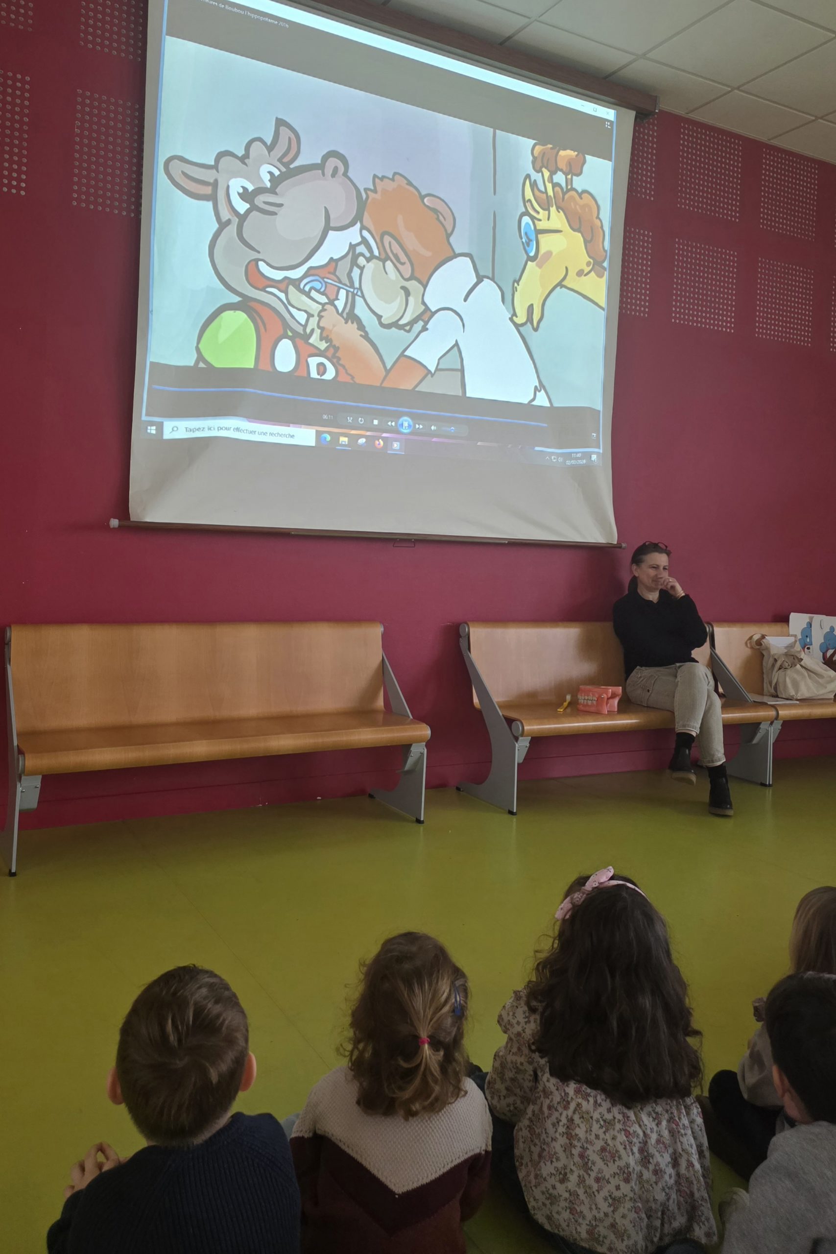 Ensuite nous avons regardé un petit film qui expliquait comment bien se brosser les dents 2 fois par jour avec une brosse à dents en bon état !