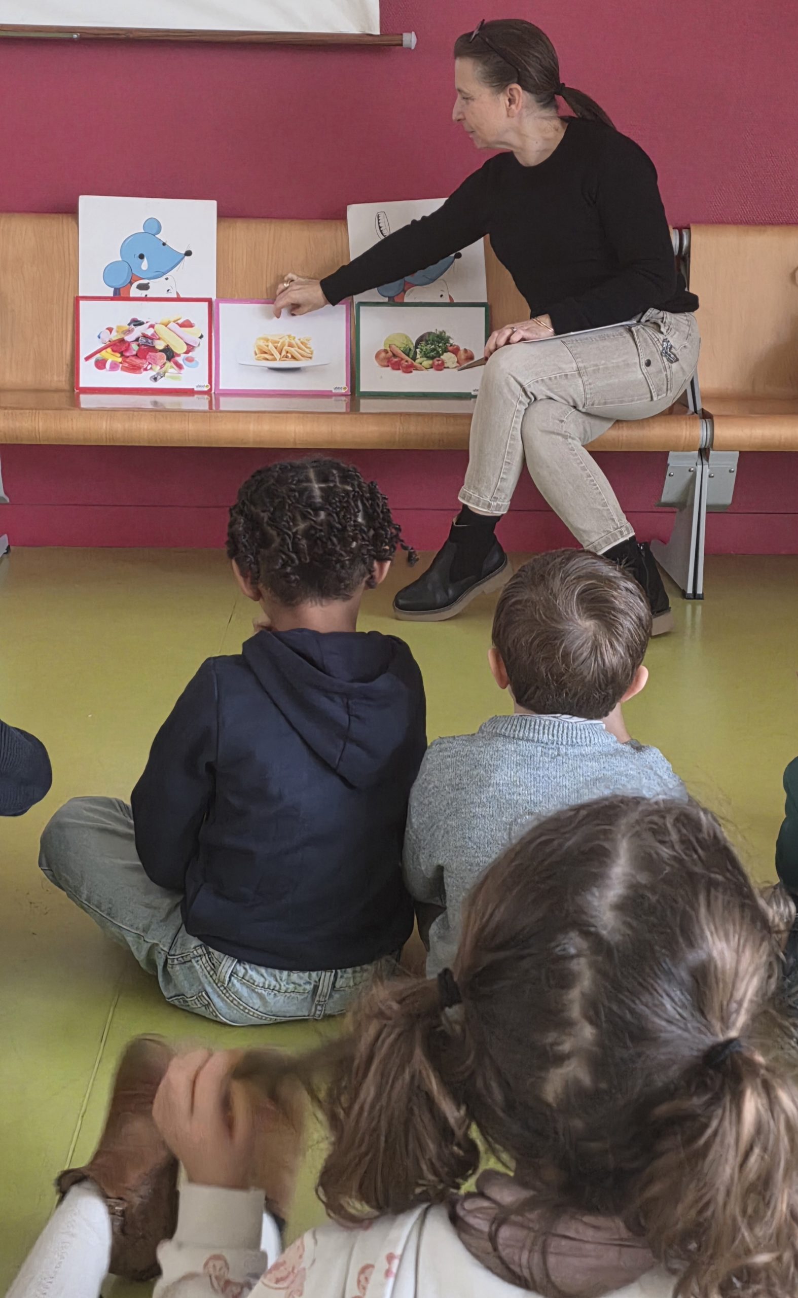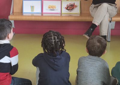 Enfin nous avons classé des aliments selon qu’ils sont bons pour les dents car non sucrés, ceux qui contiennent un tout petit peu de sucre comme le pain et les pâtes et ceux qu’il faut consommer qu’exceptionnellement car trop sucrés comme les sodas, les bonbons, le ketchup par exemple…