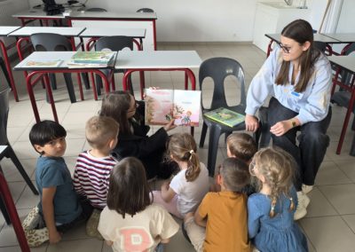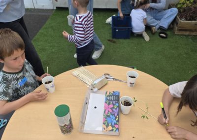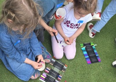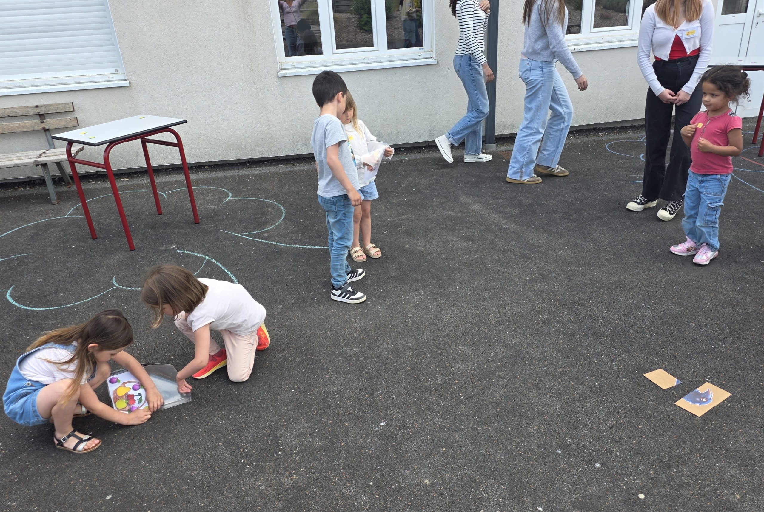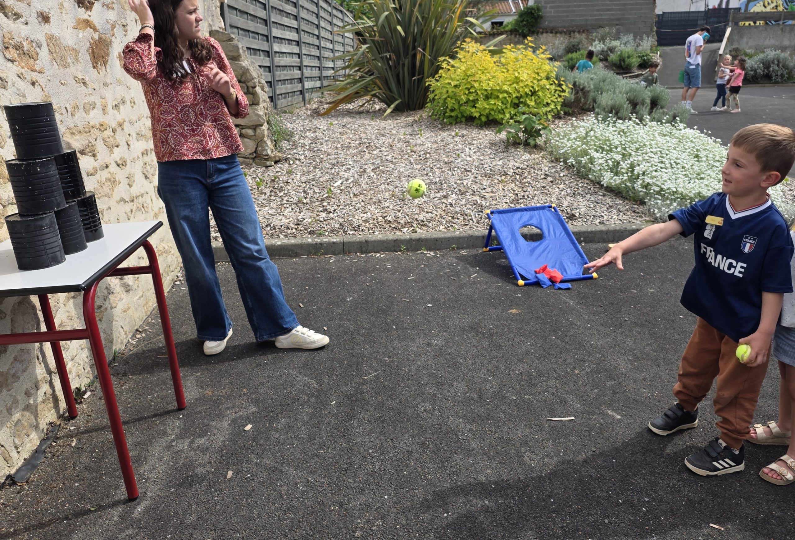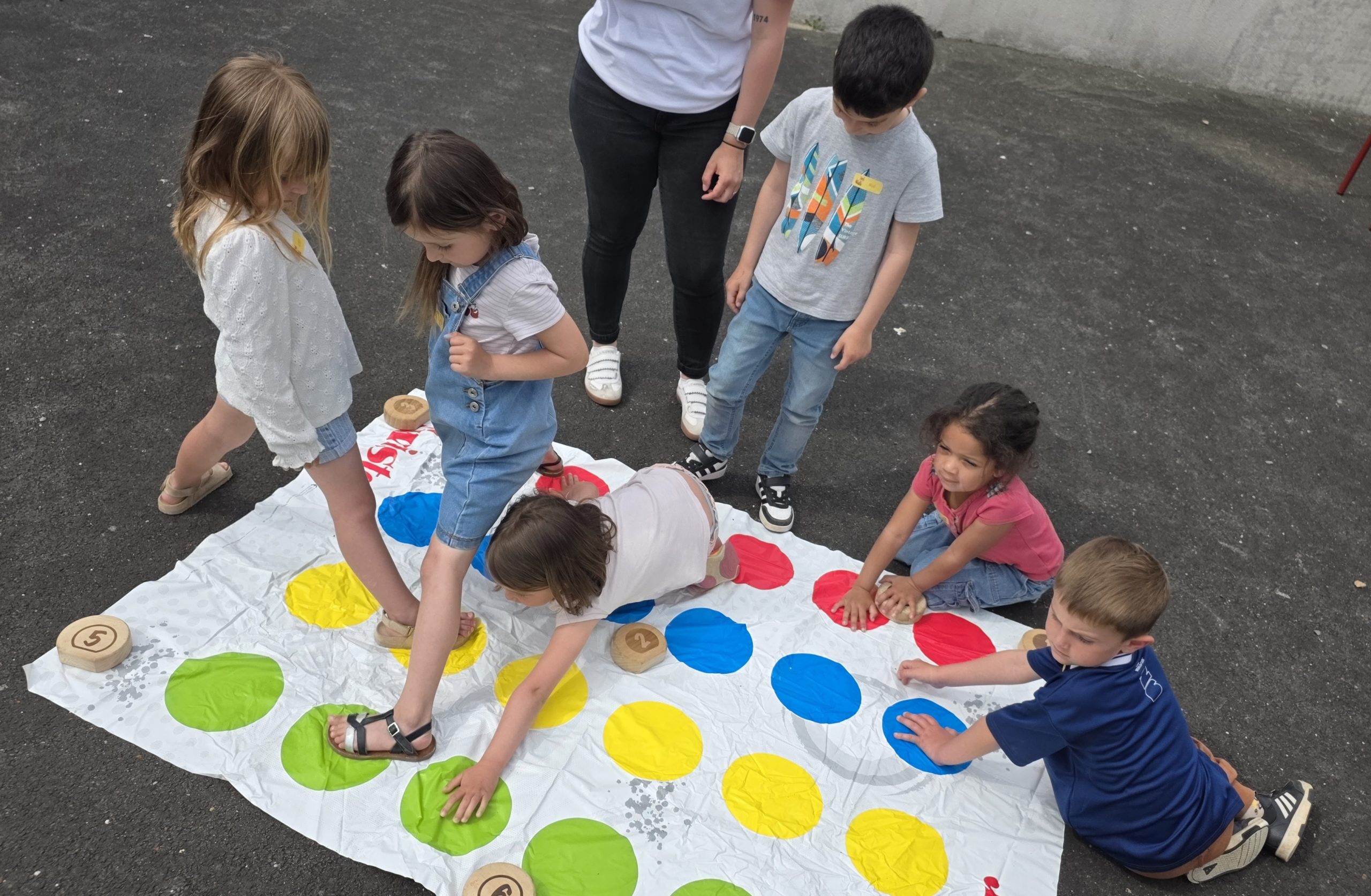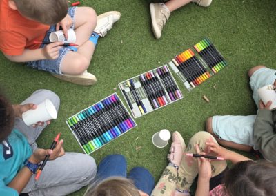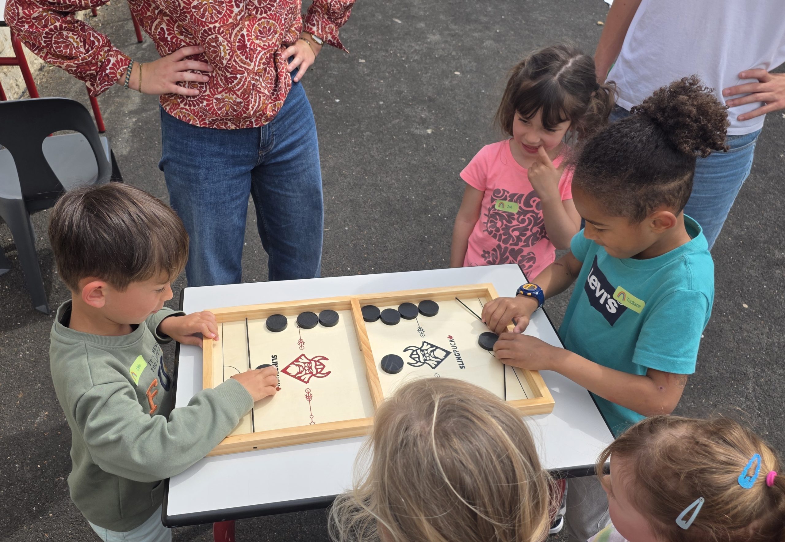 Ils nous avaient préparé différentes activités par petits groupes : lecture d’histoires, réalisation de semis, un jeu de société coopératif « le corbeau », des jeux de lancers sur une cible, un chamboule tout, un twister et autres jeux d’adresse !