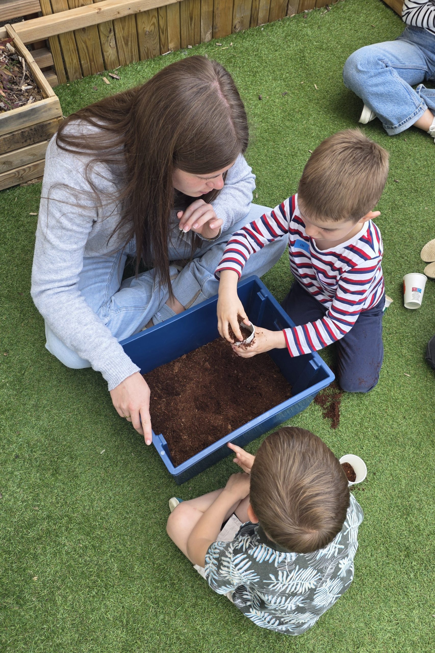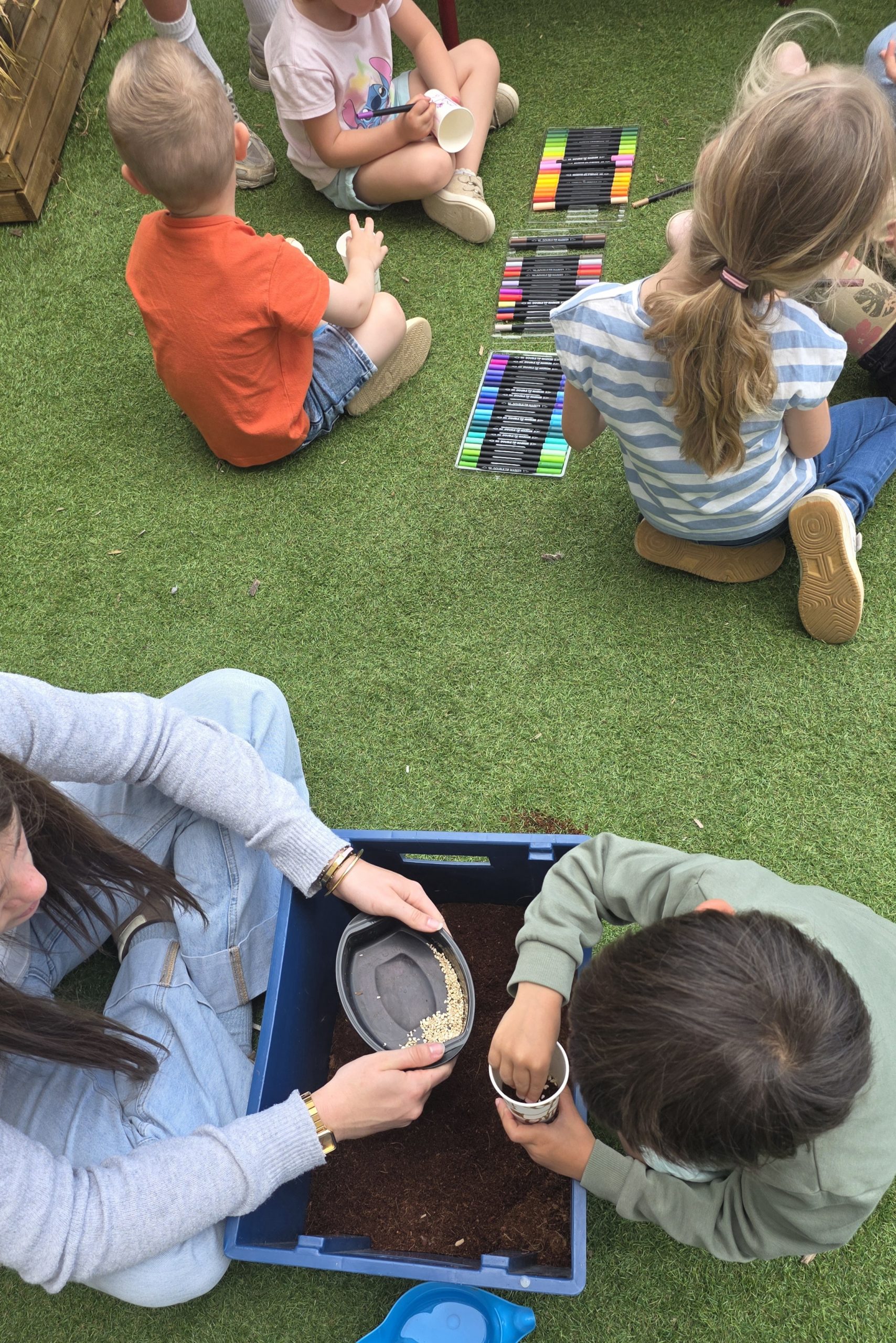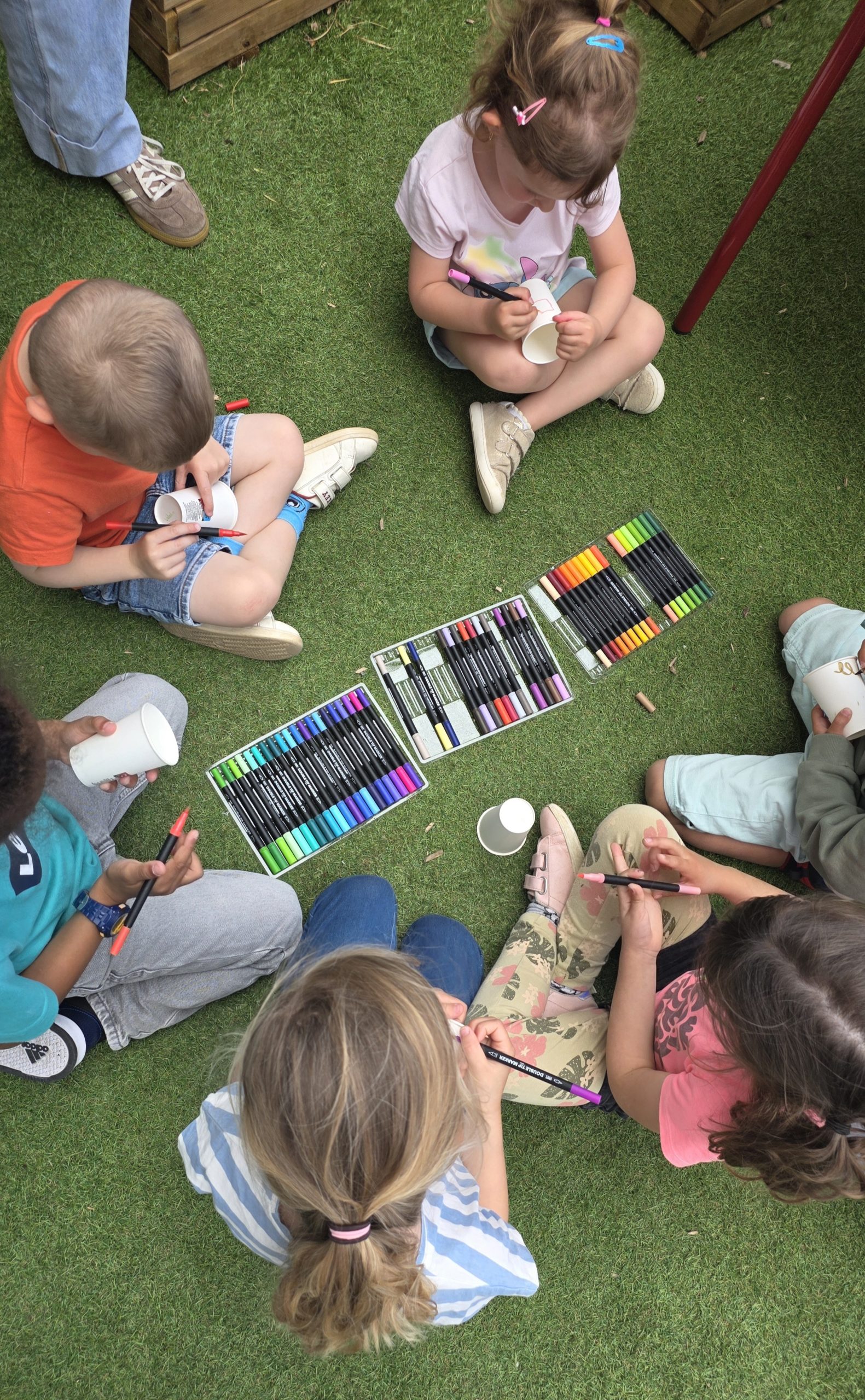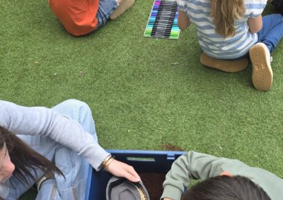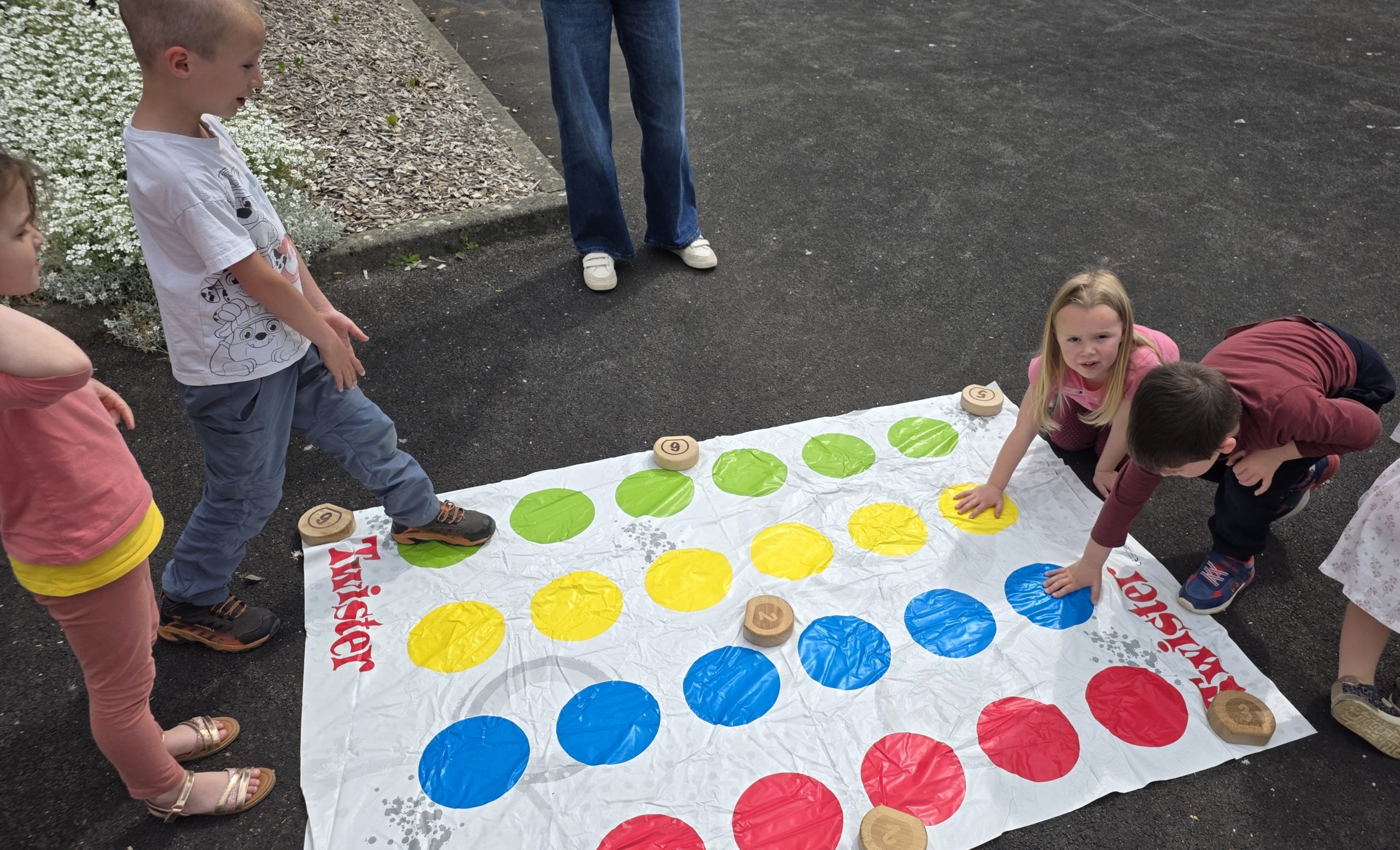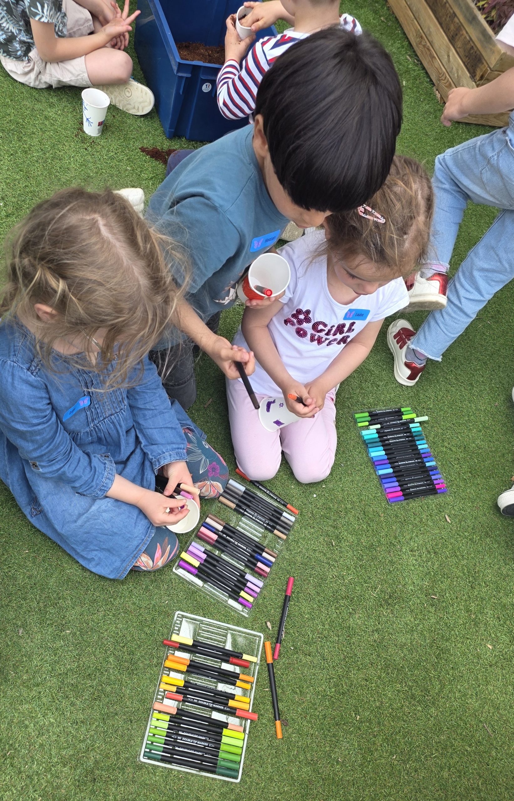 Ils nous avaient préparé différentes activités par petits groupes : lecture d’histoires, réalisation de semis, un jeu de société coopératif « le corbeau », des jeux de lancers sur une cible, un chamboule tout, un twister et autres jeux d’adresse !